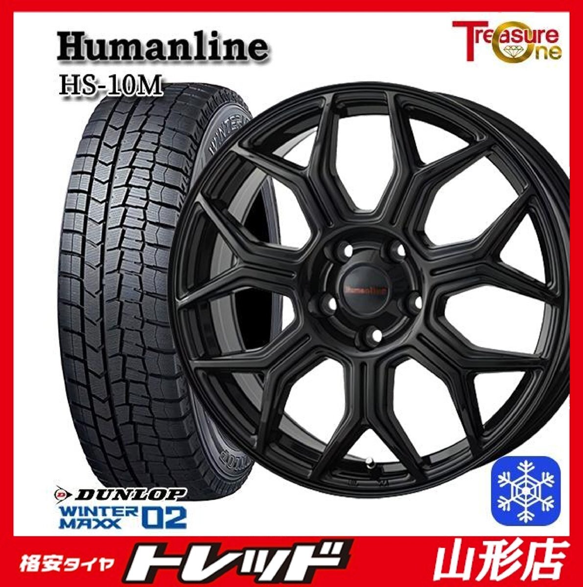 > 山形店 新品 冬タイヤホイール4本セット Humanline HS-10M 17インチ 7.0j 5H114.3 +38 BK ダンロップ WM02 195/60R17 2023年製 60プリウス