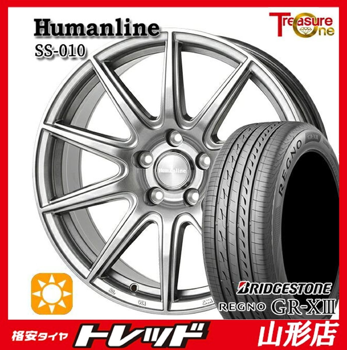 > 山形店 新品 夏タイヤホイール4本セット Humanline SS-010 17インチ 7.0j 5H114.3 +38 DG ブリヂストン レグノ GRX3 215/55R17 2025年製