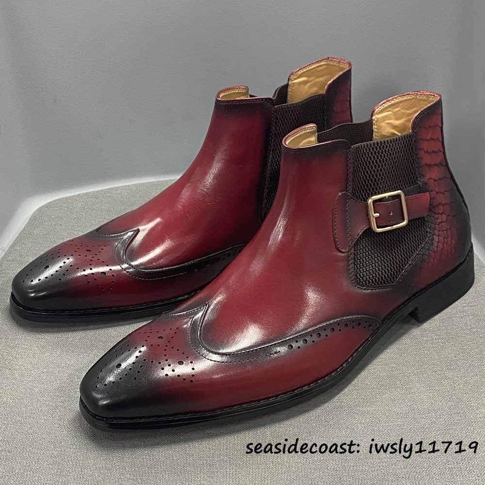 > 超希少■牛革 マーティンブーツ 鰐柄 エンジニアブーツ ビジネスブーツ メンズ 本革 レザーブーツ 職人手作り 革靴 紳士靴 レッド 25.0cm