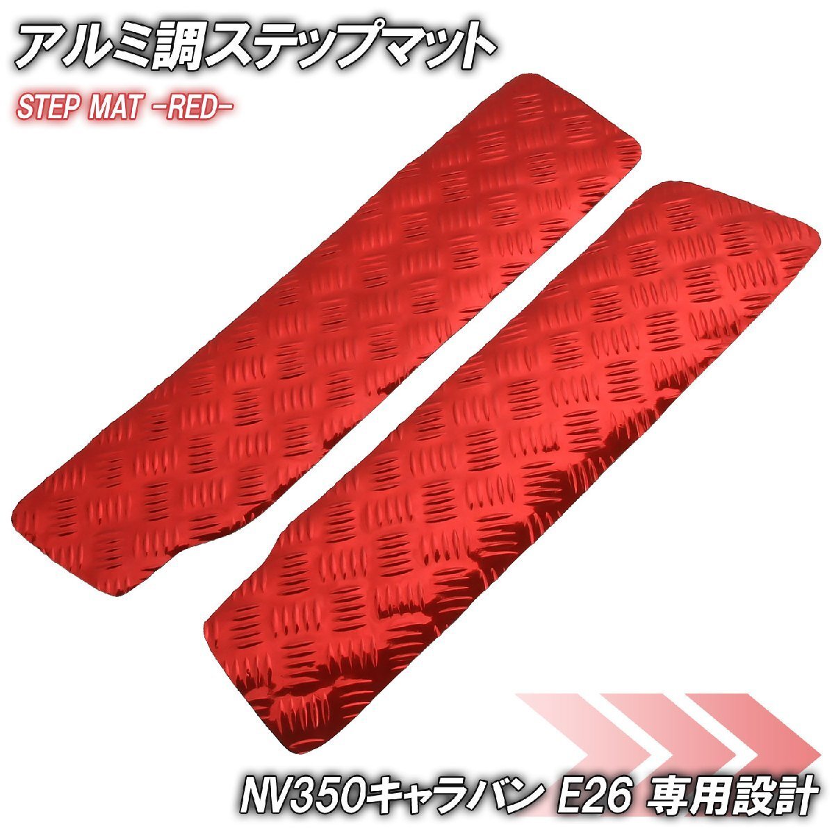 > アルミ調 ステップマット 日産 NV350 キャラバン E26 レッド メッキ 車 ゴムマット ステップボード 交換 カスタム パーツ 内装 カー用品