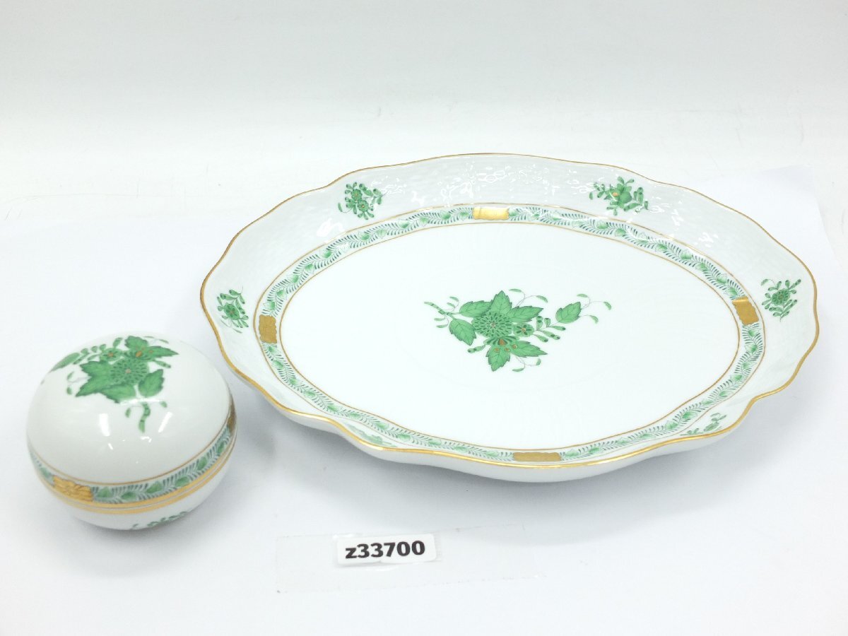 - 【z33700】良品 HEREND ヘレンド アポニーグリーン オーバルディッシュ 小物入れ 2点 まとめ 金彩 格安スタート