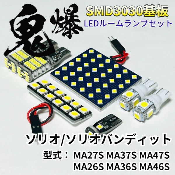 - ソリオ ソリオバンディット MA27S MA37S MA47S 爆光基盤 3030SMD LED ルームランプセット バックランプ ナンバー灯 室内灯 車検対応 パーツ