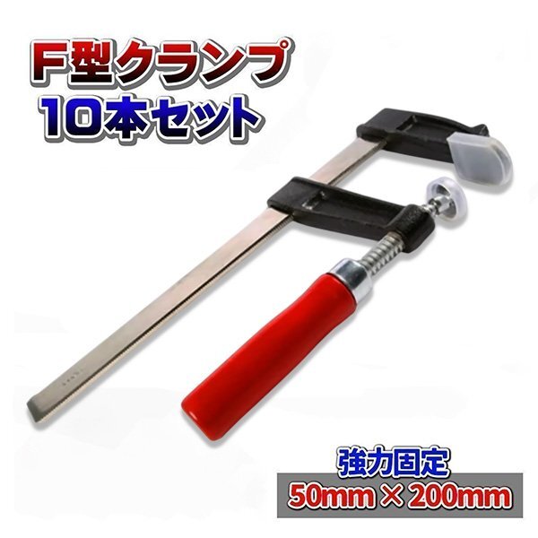 > F型クランプ 50mm × 200mm 10本セット 強力 固定工具 木材 工作 木工 溶接 作業用 DIY 日曜大工 グリップ ロック プライヤー C型 L型 固定