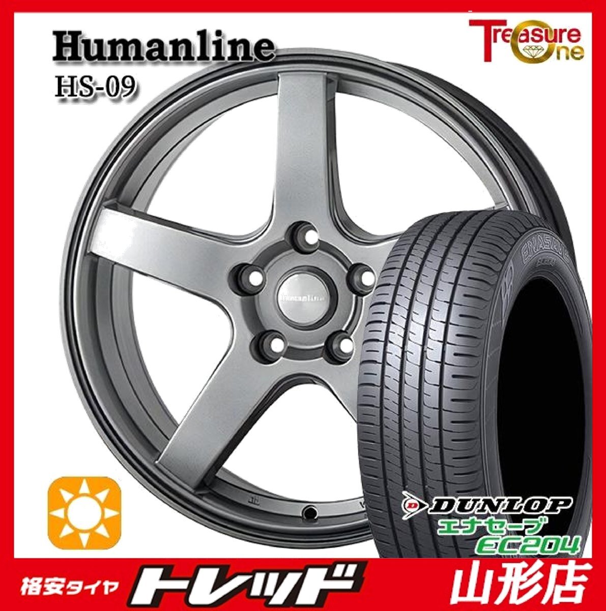 > 山形店 新品 タイヤホイールセット ヒューマンライン HS-09 16インチ 6.5j 5H114.3 +53 DG DUNLOP エナセーブ EC204 215/60R16 2024-25年製