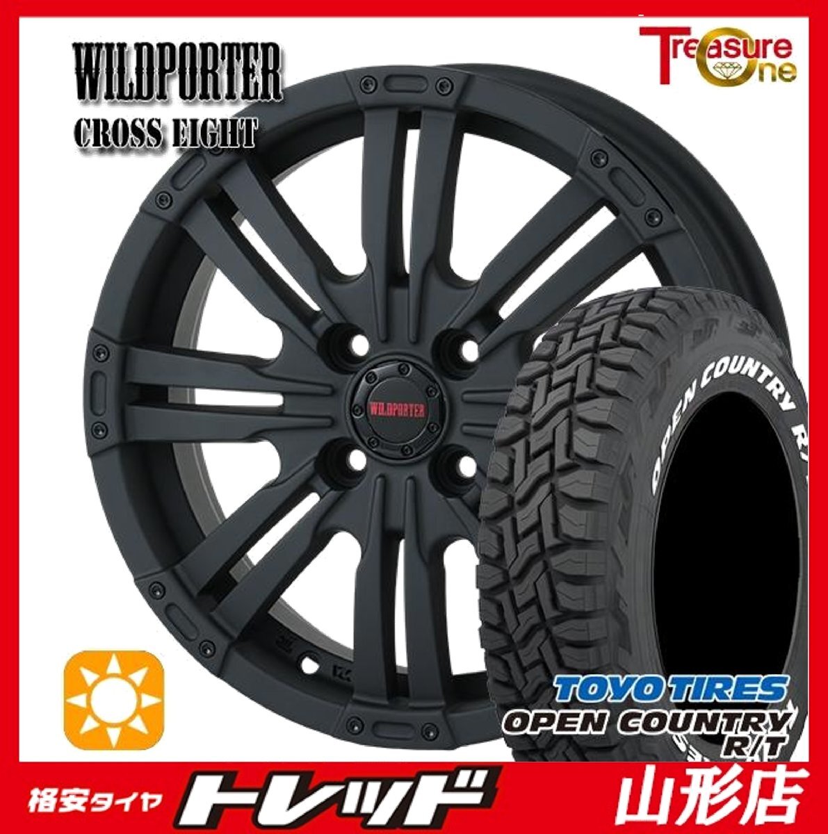 - 山形店 新品 タイヤホイールセット WILDPOTER クロスエイト 15インチ 4.5j 4H100 +43 MB TOYO オープンカントリーR/T 165/60R15 2024年製
