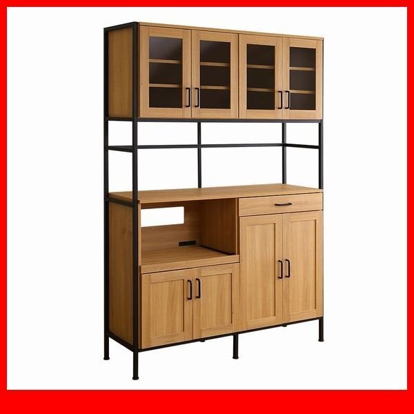 > 食器棚★新品/ヴィンテージ ワイド 食器棚 幅123cm/レンジ台 家電収納庫/木目調 ナチュラル/側面 背面も美しく/シャビーオーク/a1