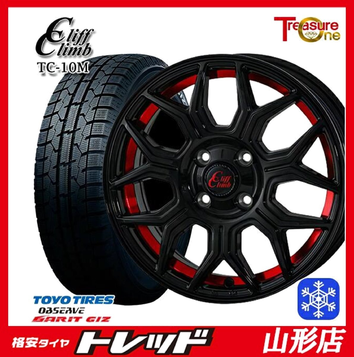 > 山形店 新品 冬タイヤアルミ 4本セット クリフクライム TC-10M 15インチ 5.5j 4H100 +43 BKRED TOYO ガリット GIZ 185/60R15 2023年 ヤリス