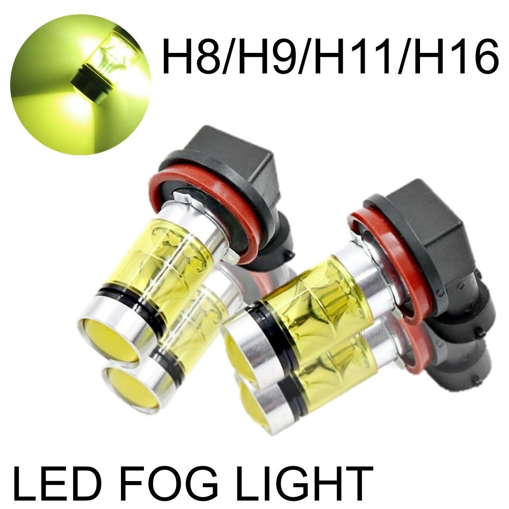 - H8/H9/H11/H16 高輝度 LEDヘッドライト フォグランプ 1000Lm 3000K 2本 車検対応 ポン付け 100w イエロー