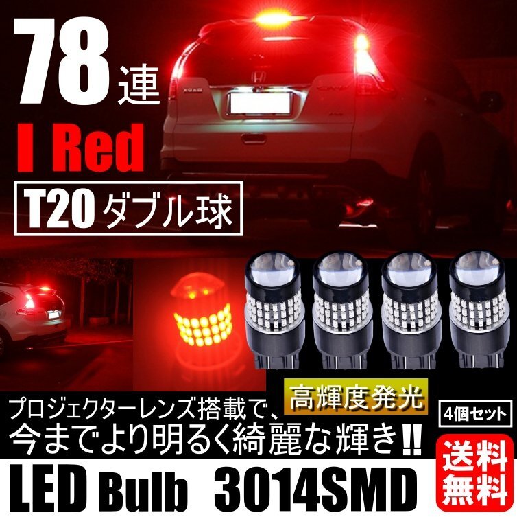 - 高輝度 LED T20 ダブル 78連 ブレーキランプ テールランプ 赤 レッド 高輝度SMD ストップランプ 無極性 4個セット
