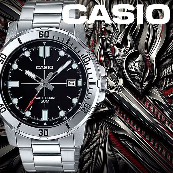 > 新品 逆輸入カシオ最新作 精悍ブラックメタリック 50m防水 腕時計 未使用 CASIO メンズ 激レア日本未発売