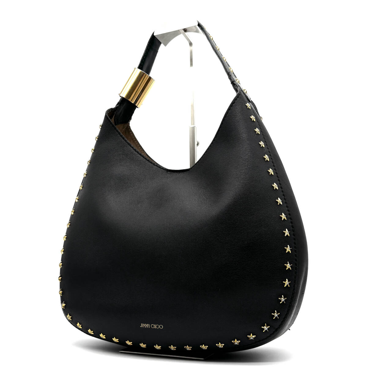 > JIMMYCHOO ジミーチュウ ワンショルダーバッグ レザー スタッズ ロゴ 肩掛け可 大容量 ハーフムーン レディース ブラック