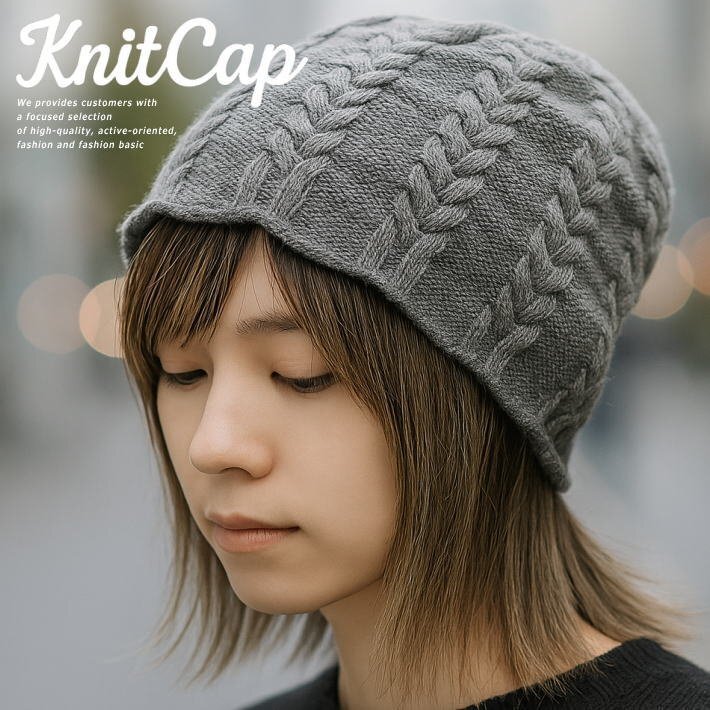 > ニットキャップ ニット帽 ワッチ ビーニー メンズ レディース 帽子 ケーブル編み ケーブルニット 7986609 グレー 新品 1円 スタート