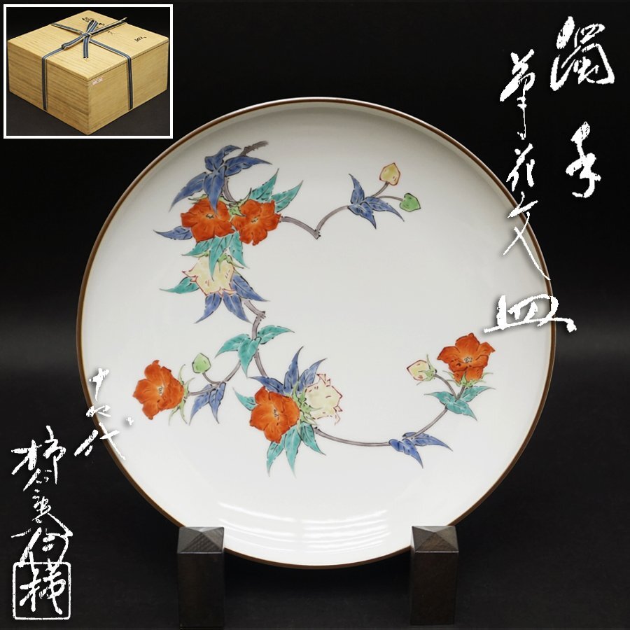- 人間国宝 十四代酒井田柿右衛門本人作 濁手草花文皿 直径21㎝ 共箱 共布 飾台 未使用品 長期保管品 極美品 保証品 古美術品