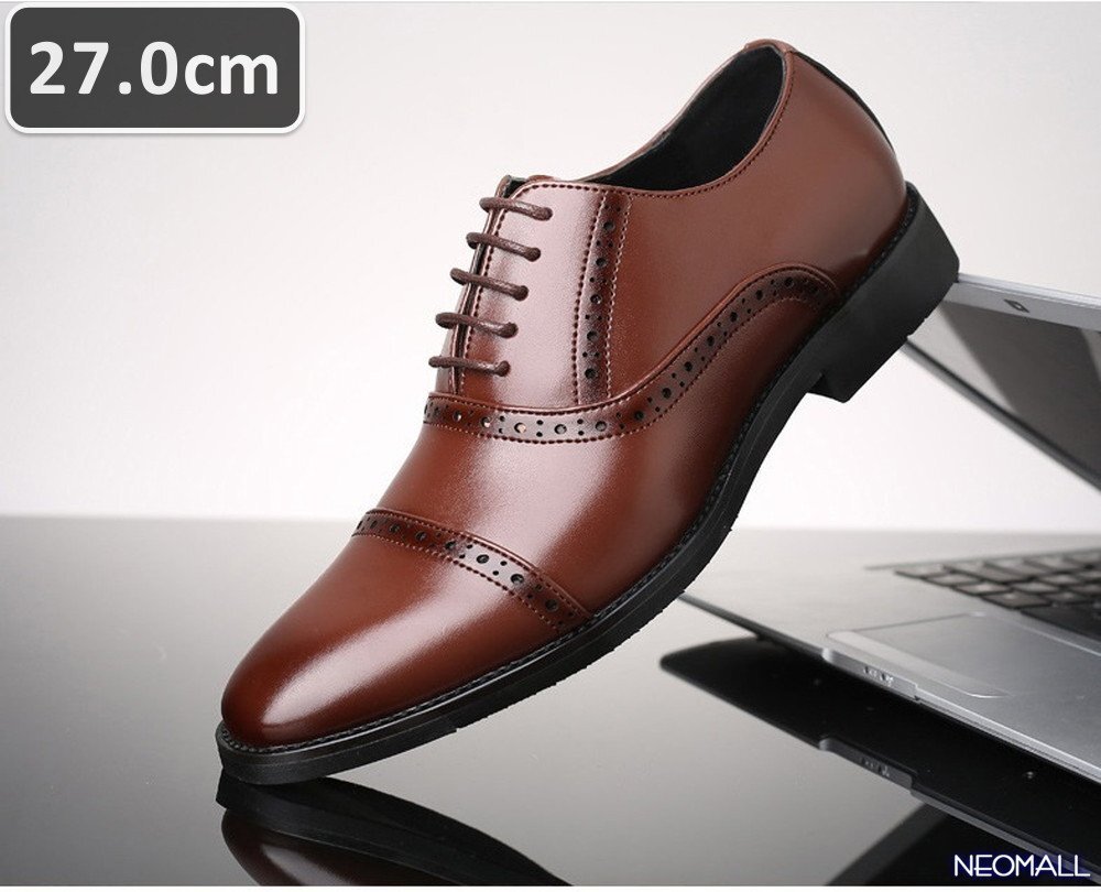 - 人気商品 ☆ メンズ ビジネス レザー シューズ ブラウン サイズ 27.0cm 革靴 靴 カジュアル 屈曲性 通勤 軽量 【428】