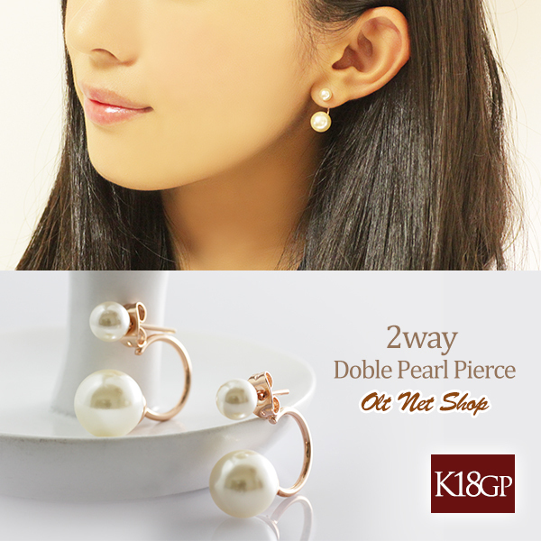 > パール ピアス レディース 真珠 18金 18kコーティング ピンクゴールド 上品 フォーマル パールキャッチ / K18GP 2WAYダブルパールピアス