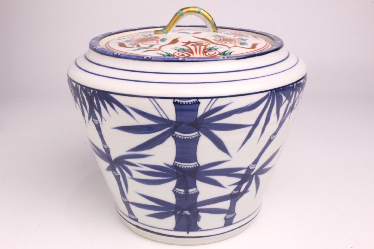 - 「狸庵RS」 京焼 手塚景雲 作 染付竹絵 水指「共箱・共布・保護箱」/ 初釜 平安景雲 ☆本物保障☆l6ku9q