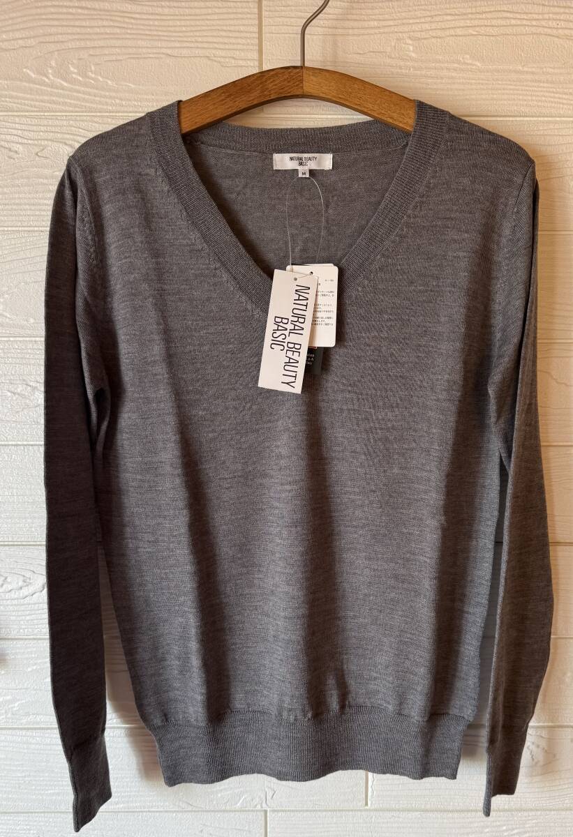 - 未使用★NATURAL BEAUTY BASIC/ナチュラルビューティーベーシック★V ニット ウール100% グレー サイズM