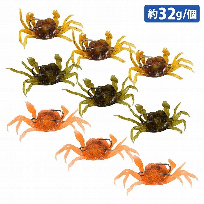 - [3色 9個セット]タコ 釣り カニ ルアー 蟹 ソフト ワーム エギ ベイト ジグ ダブルフック たこ 蛸 テンヤ 仕掛け 32g 11cm