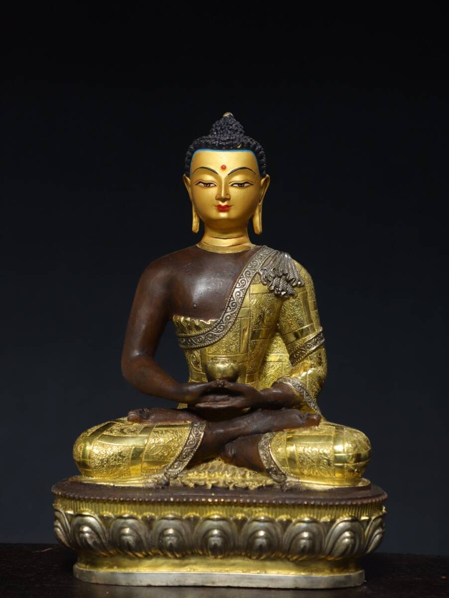 - 旧蔵 古銅彫 塗金 描彩 釋迦牟尼 佛像 古擺件 古置物 中国古玩 骨董品 時代物 稀少唐物