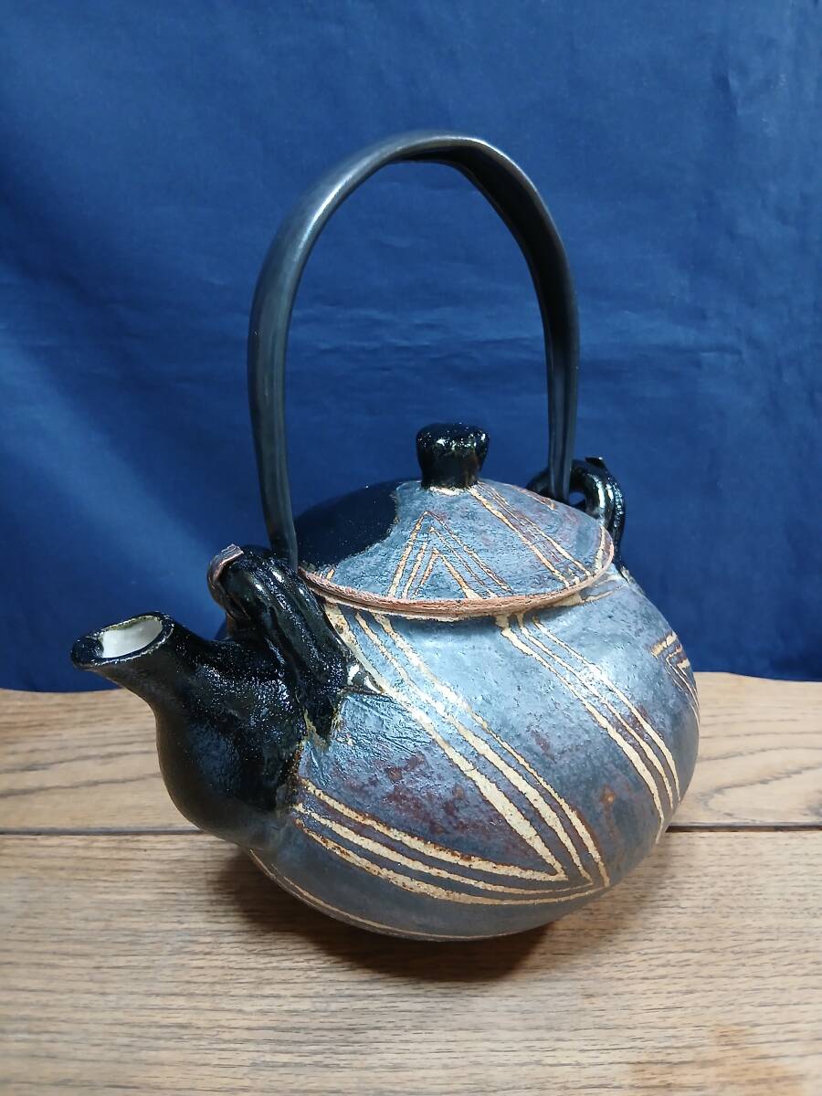 - ★伊賀焼 稲葉直人 黒織部 線紋土瓶 湯沸 水注 人気作家 薬瓶 茶器 急須 土瓶 煎茶道具★