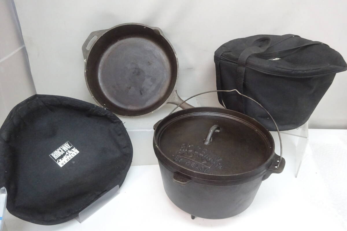 - ★540)鋳鉄製3本脚ダッチオーブン&スキレットセット・RIDGEWAY by KELTY 箱、説明書なし※中古品/使用感キズ現状品■120