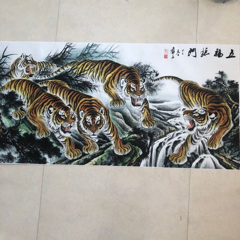 - 張大千 トラ 虎 下山虎図 五福臨門 中国美術 中国水墨画 表装なし 画仙紙 画芯 玄関画 リビング 鑑賞 装飾 郵便発送 70*138cm zh947