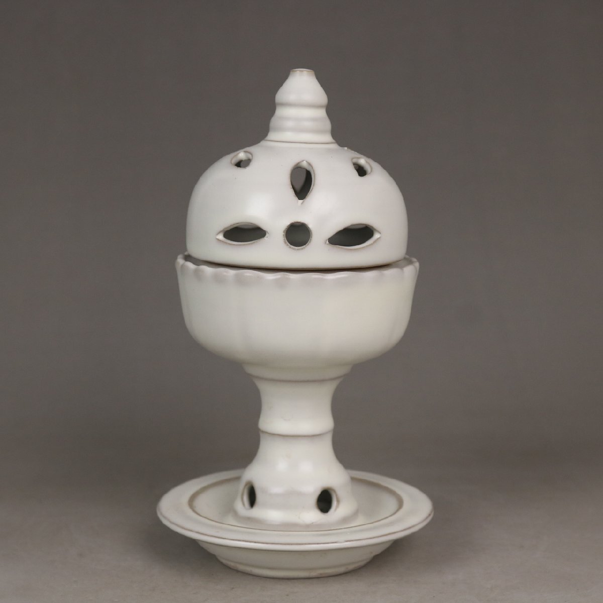 - 磁器 置物 宋代 汝窯 鉄胎月白釉 香炉 彫刻 鏤空 手作り 観賞 装飾 中国美術品 工芸品 収蔵 コレクション ZH651