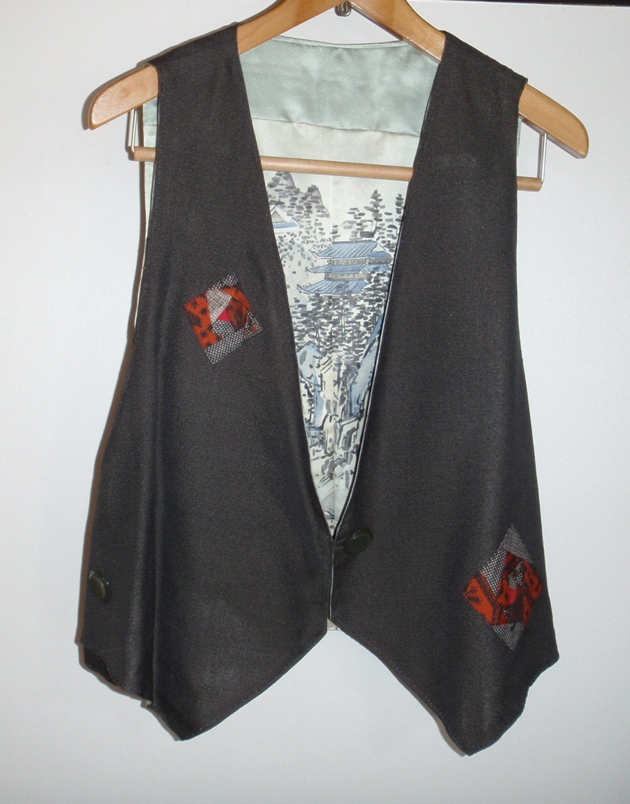 - ハンドメイド 上質シルク着物リメイク ベスト 正絹 総裏付き 茶系