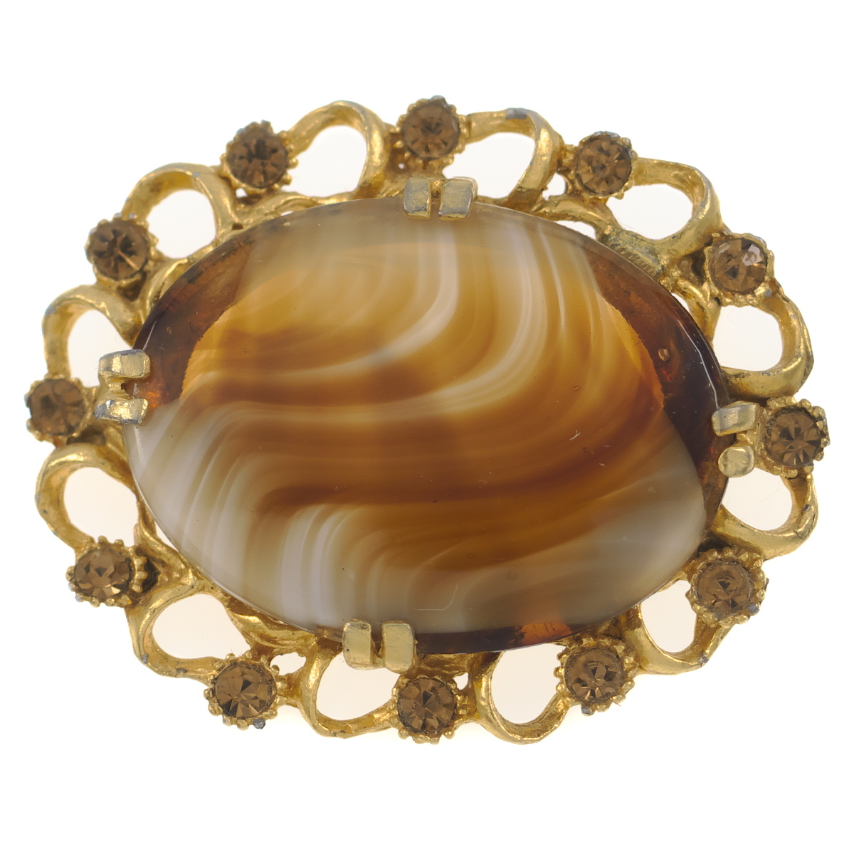 - UK4413◆ フラワーモチーフ 大粒 ブラウン系マーブルストーン ギブレガラス 花 英国 イギリス ◆ ヴィンテージブローチ ◆