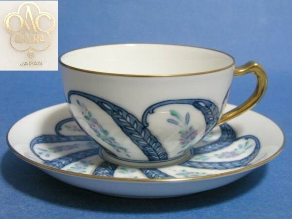 - ◎大倉陶園 【手描き】呉須更紗 ティー・コーヒー兼用カップ&ソーサー◎z17