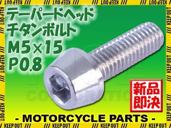 > メール便OK!M5×15 P0.8 チタンボルト 1本 5mm 15mm ピッチ0.8 シルバー テーパー ボルト バイク 車 自転車 自動車 ロードバイク