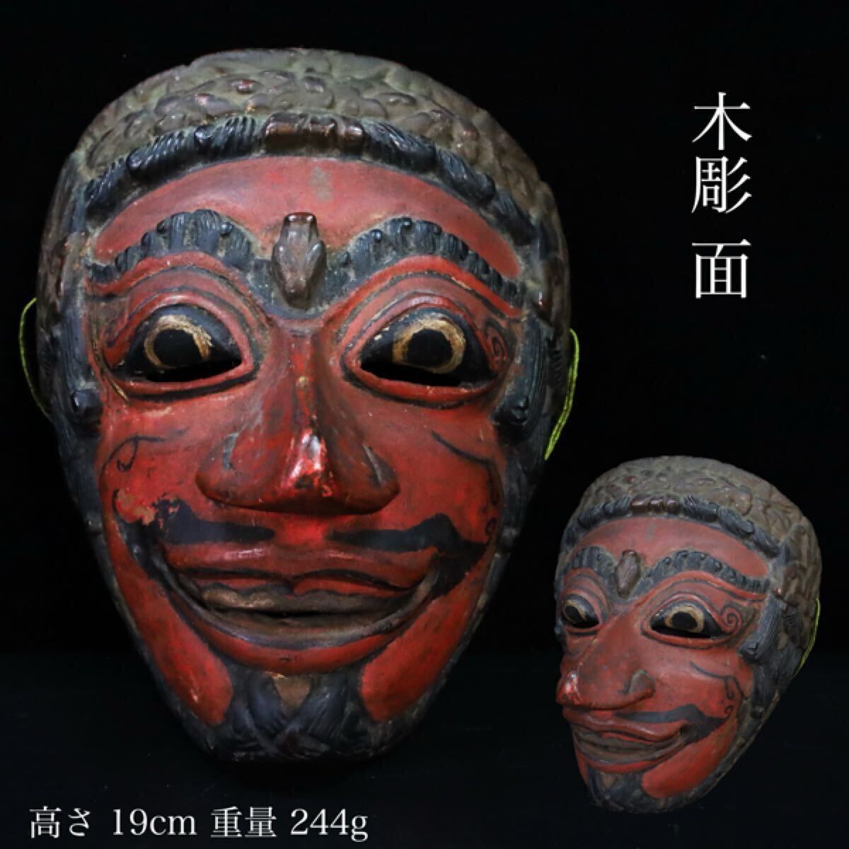 - ◇雅◇ 李朝時代 お面 高麗 デコイ 唐物骨董 時代物 木彫彩色面 古面 高さ19cm/244g 魔除け 能面 置物 /RYO.25.7 [L26.3] OO4