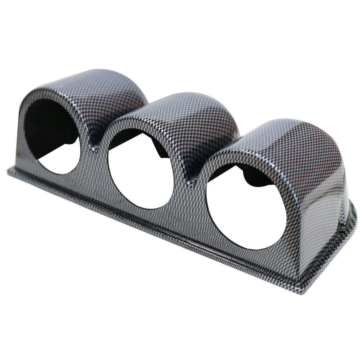 > 【送料380円】[3連] メーターケース 汎用 52mm カーボン調 増設 メーター カバー フード オートゲージ デフィ ブースト 水温 油温 黒