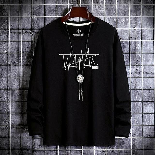 - tシャツ メンズ 長袖 秋 綿100% カットソー 無地 おしゃれ お洒落 アメカジ ロゴ入り ストリート ブラック 2XL
