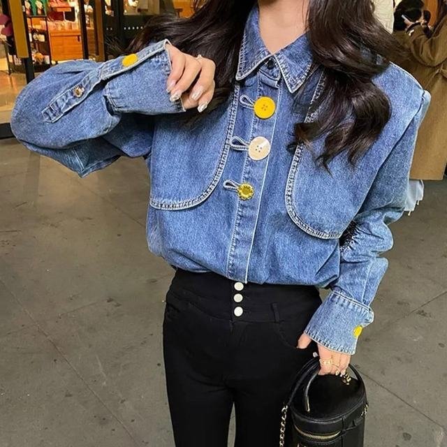 - Gジャン デニム レディース ガールズ ジャケット アウター トップス 上着 長袖 春秋コーデ 通学 着痩せ 可愛い カジュアル Sサイズ