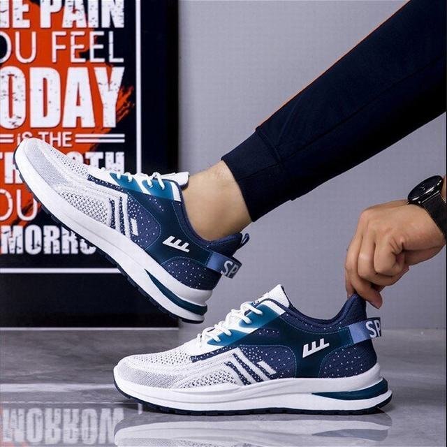 - ランニングシューズ スニーカー メンズ メンズシューズ 運動靴 ゆったり スリッポン 歩きやすい 通気性 ホワイト+ブルー26.5cm
