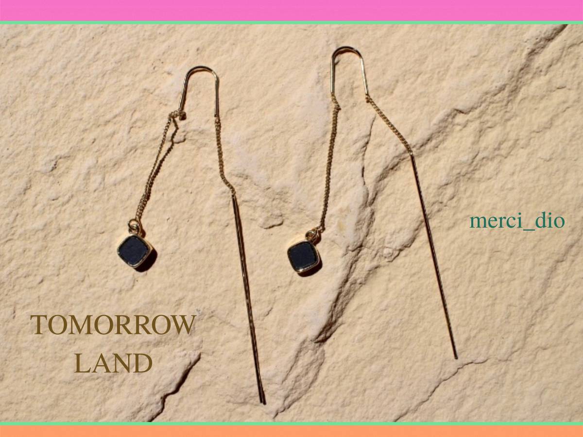 - トゥモローランド TOMORROWLAND ゴールド×ブラック スクエアパーツ チェーンフックピアス 華奢 新品 未使用 ドゥーズィエムクラス