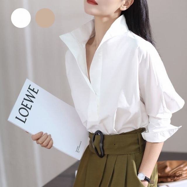 - 長袖シャツ ブラウス シャツ レディース トップス 上着 ビジネス Vネック ショット丈 インナー 長袖 春秋コーデ ホワイト 2XLサイズ