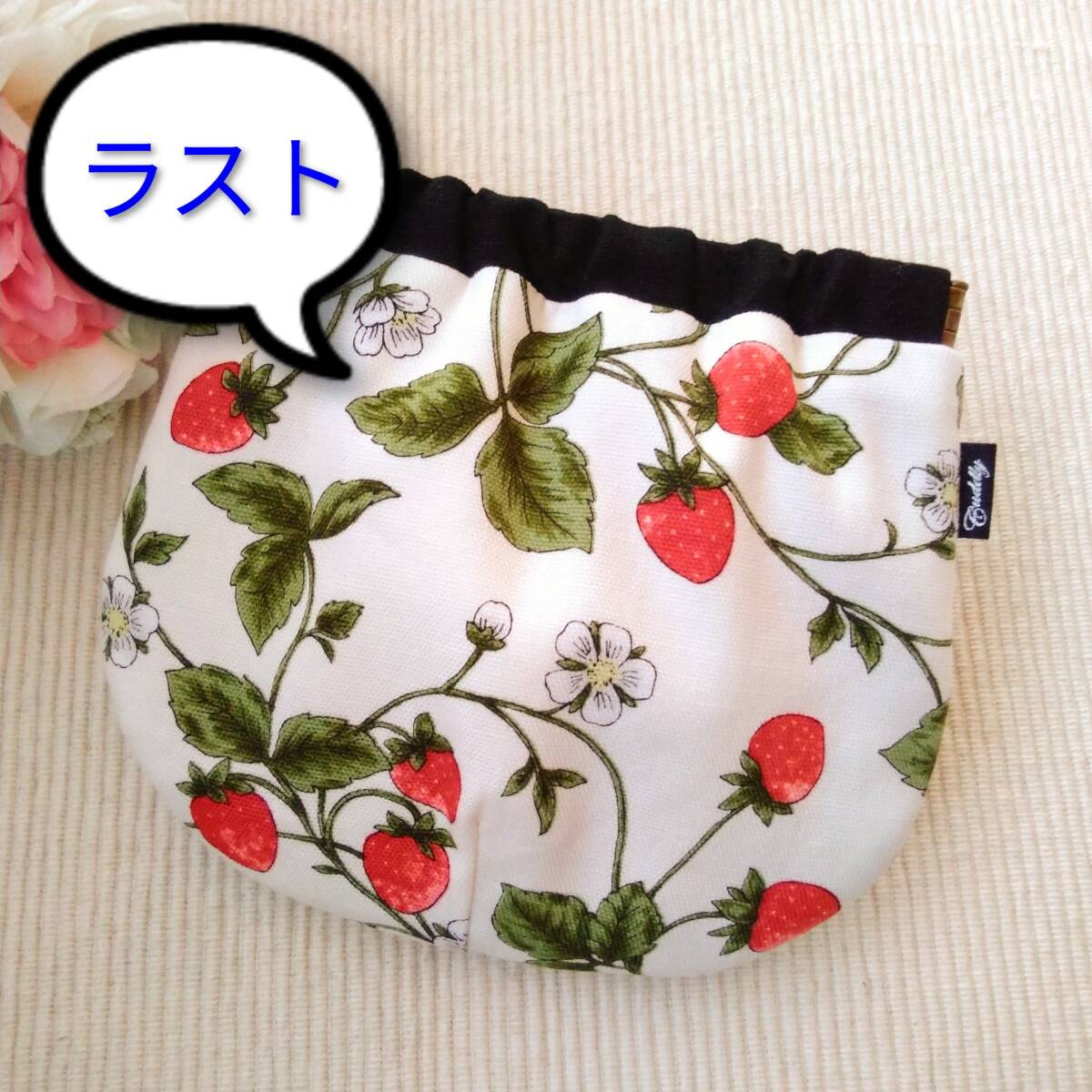 - ラスト ハンドメイド バネポーチ 苺 ナチュラル