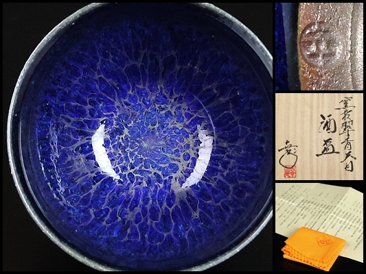 - 【 鎌田幸二 】秀逸作 窯変翠青天目盃 師 清水卯一 共箱 保証
