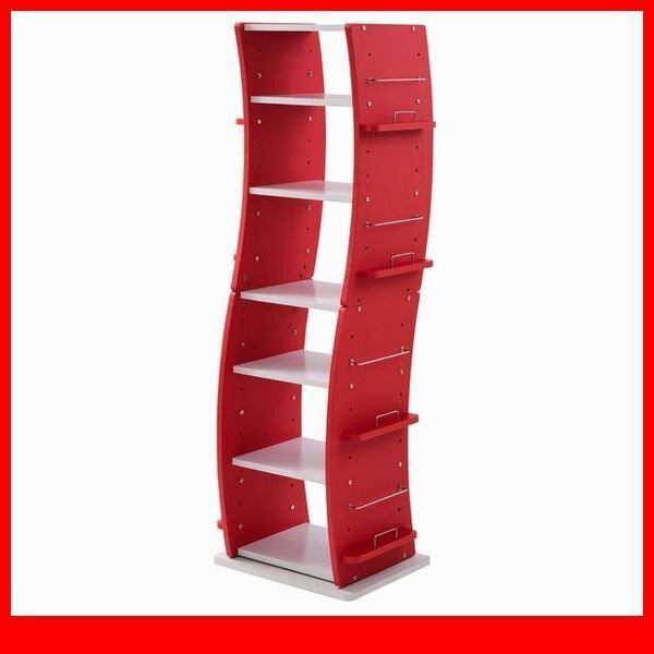 - ラック★新品/360度回転ラック/多目的 本棚 飾り棚 ディスプレイ/分割可 縦置き 横置き/可動棚 省スペース スリム/ホワイト×レッド/a4