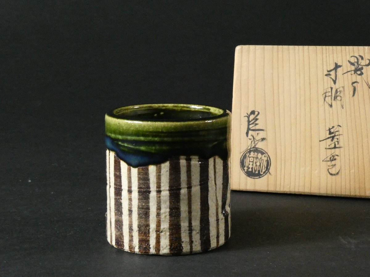 ・織部焼 山口錠鉄 寸洞蓋置 共箱 /茶道具 織部蓋置