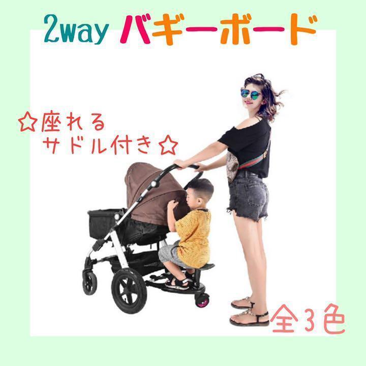 > バギーボード ベビーカー ステップ ボード 2way サドル付き 黒 ベビーカーボード ツーウェイボード 二人乗り お出かけ