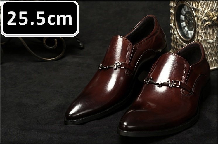 > メンズ ビジネス レザー シューズ 本革 ボルドー サイズ 25.5cm 革靴 靴 カジュアル 屈曲性 通勤 軽量 新品 【apa-163】