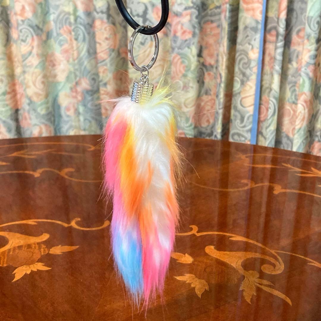 - しっぽ キーホルダー ふわふわ もふもふ ミックスカラー④