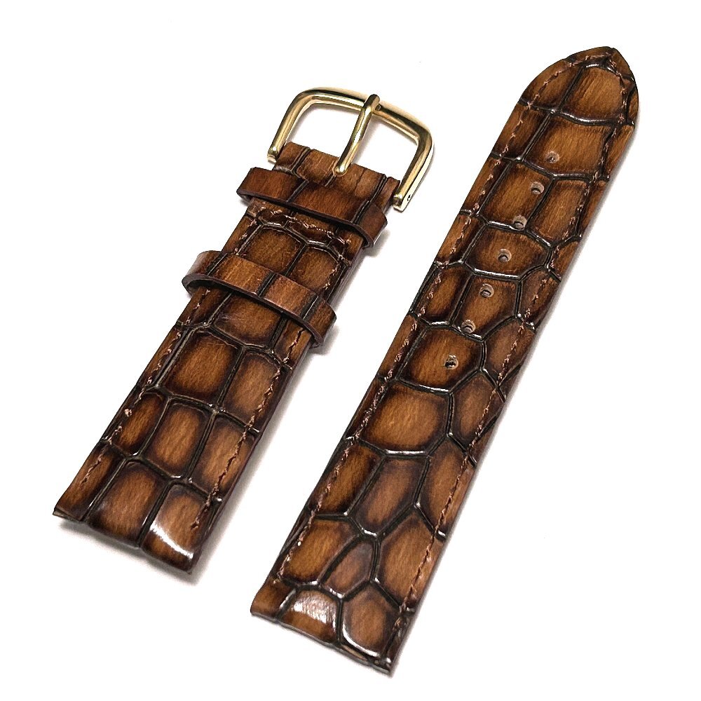 - 限定 パティーヌ調 本革型押しクロコレザー時計ベルト 22㎝ 茶 ブラウン 【アップルウォッチ対応】ヴィンテージ 限定 ベルルッティ