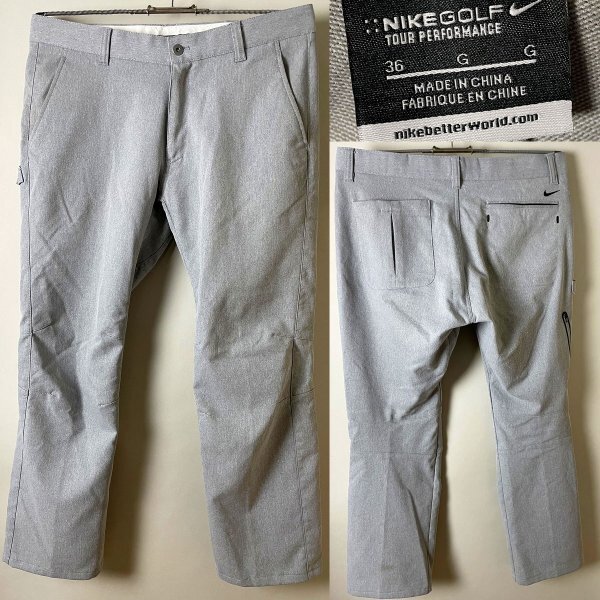 - ★【国内正規品 デザイン◎】2013年位 近年ビンテージ NIKE GOLF ナイキ ゴルフ 604904-072 立体裁断 ポリエステル100% パンツ W36 グレー