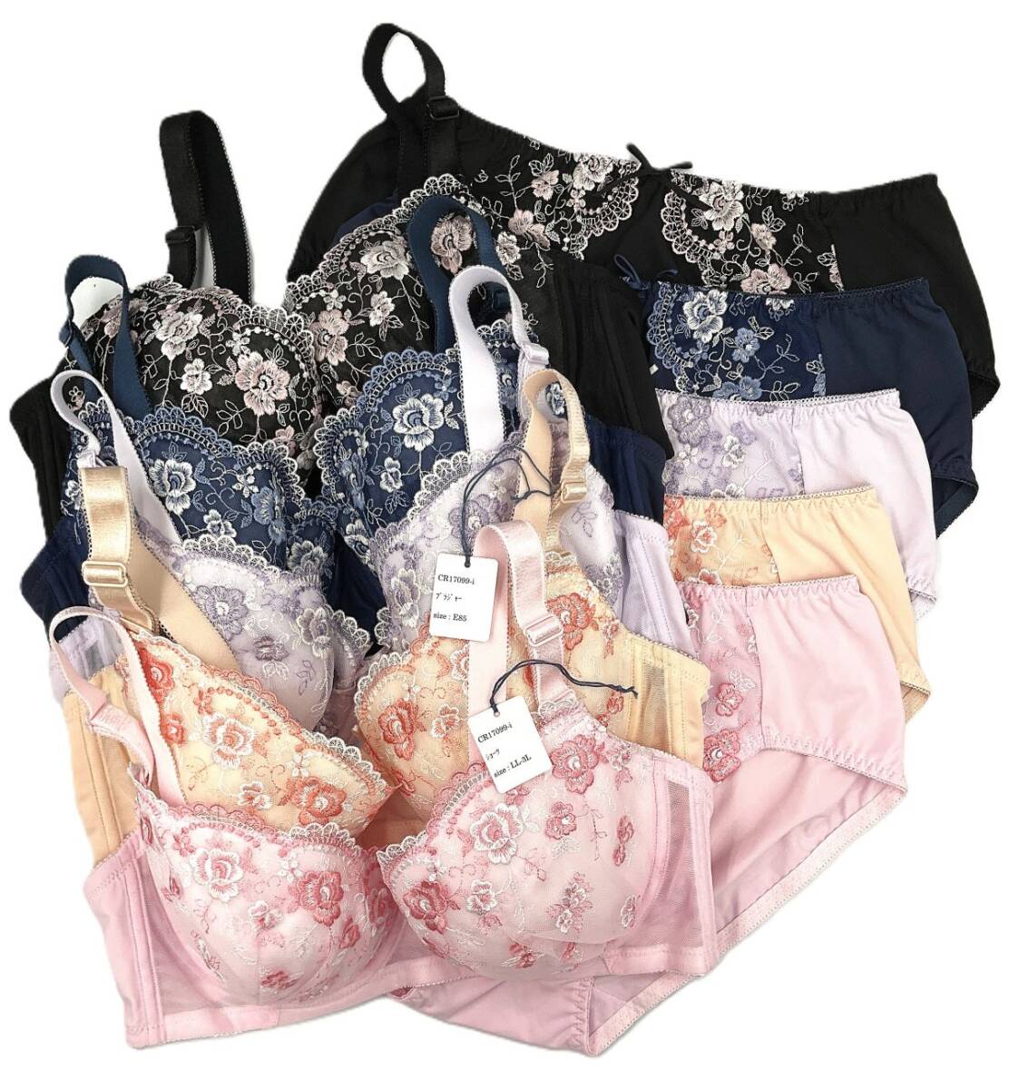 - CR17099 IB⑦【特価】新品 大きい ブラショーツセット 5枚組 E85/LL-3L 薄肌 花柄 レース リボン 脇高 3/4カップ ストレッチ レディース