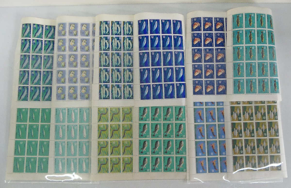 > ☆保管品!収集 コレクション 切手 魚介シリーズ 全12種 15円×20枚×7シート/10円×20枚×5シート 額面3100円☆