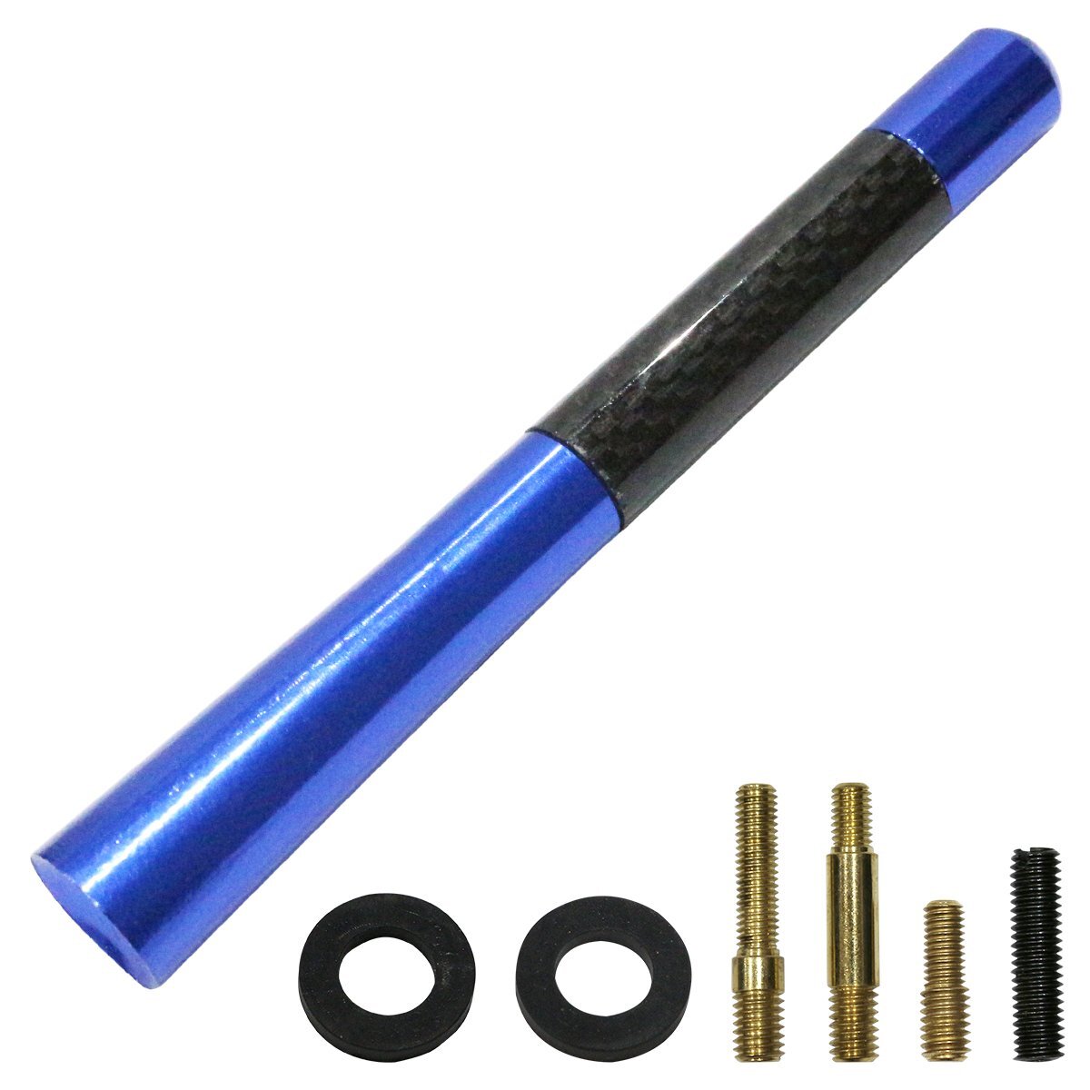 - 【送料220円】[全長12cm/120mm] ショートアンテナ 変換アダプタ4種付 国産 外車 カーボン調 ルーフ アンテナ アルミ製 8CM ブルー/青